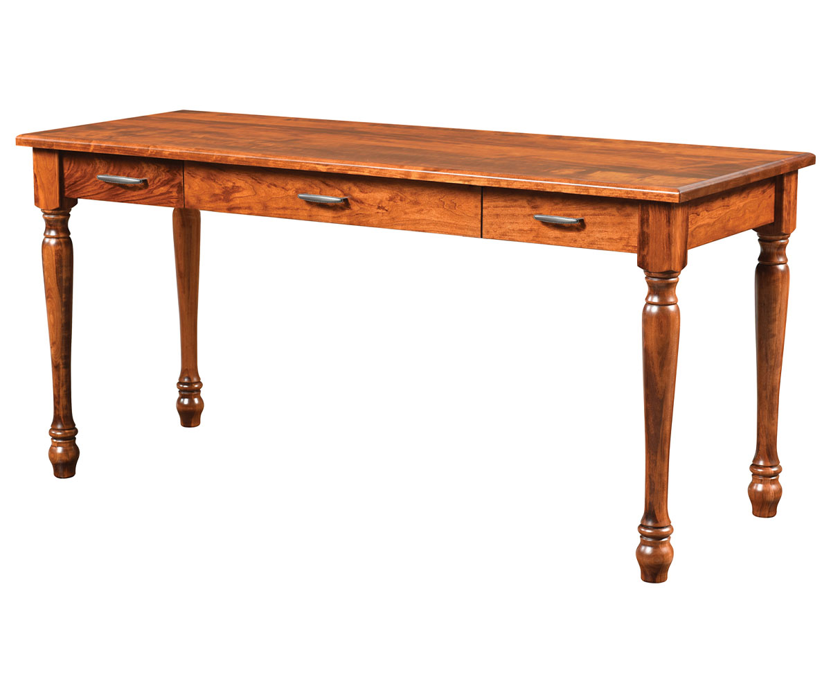 Desk Features: • One Keyboard Drawer • Two Pencil Drawers • Dovetailed Drawers • Full Extension Drawer Slides